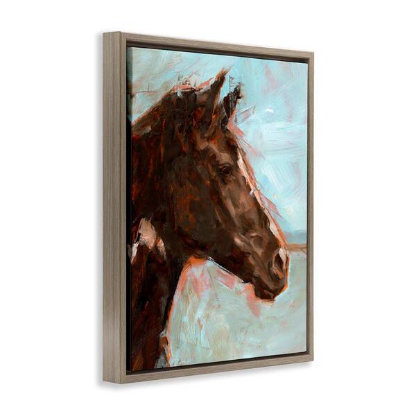 Brown Horse on Blue by Ethan Harper Brown Floater Frame Animal Graphic Art Print 21 in. x 17 in.