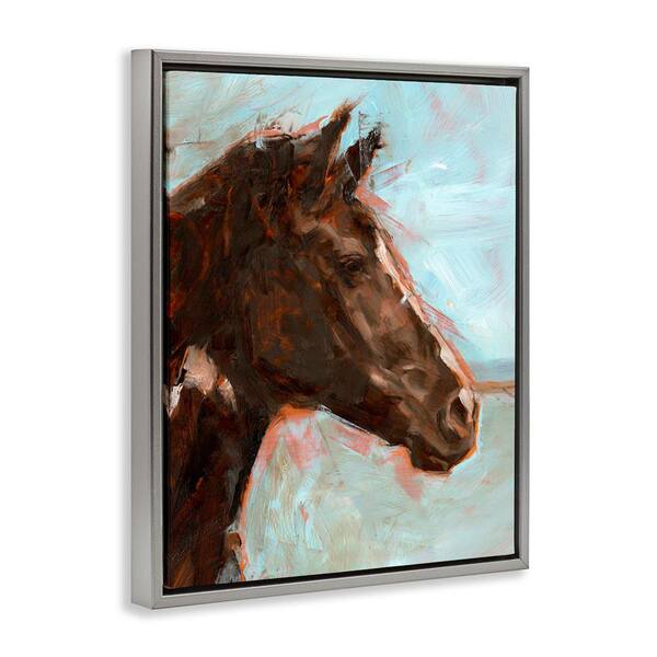 Brown Horse on Blue by Ethan Harper Gray Floater Frame Animal Graphic Art Print 21 in. x 17 in.