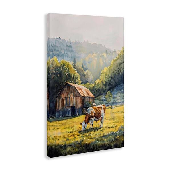 Brown Spotted Cow Grazing by Franklyn Gregory Unframed Nature Graphic Art Print 24 in. x 16 in.