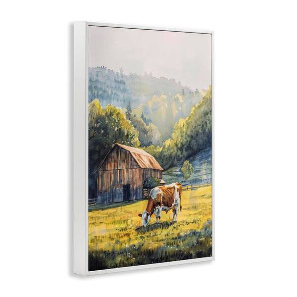 Brown Spotted Cow Grazing by Franklyn Gregory White Framed Nature Giclee Art Print 18 in. x 12 in.