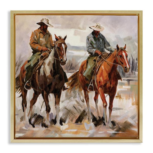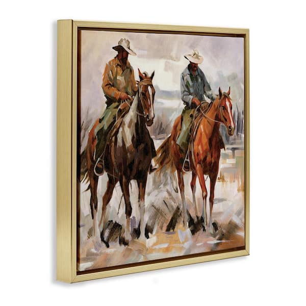 Brush Stroke Cowboys by White Ladder Gold Floater Frame People Graphic Art Print 25 in. x 25 in.