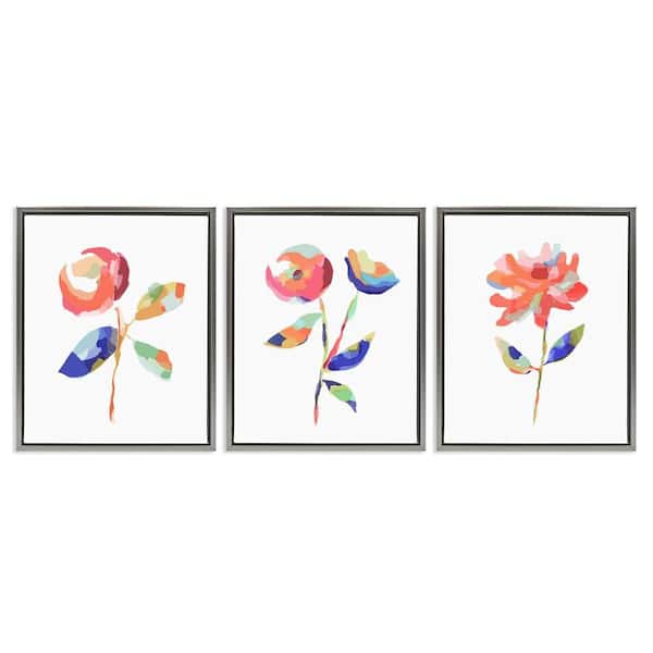 Brushed Freeflow Flower by Lisa Nohren 3 Pieces Gray Floater Frame Nature Graphic Art Print 21 in. x 17 in.