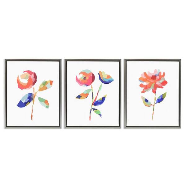 Brushed Freeflow Flower by Lisa Nohren 3 Pieces Gray Floater Frame Nature Graphic Art Print 31 in. x 25 in.