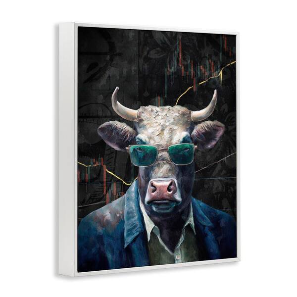 Bull in Sunglasses by Svetlana Aleynikova White Framed Animal Giclee Art Print 30 in. x 24 in.