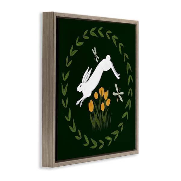 Bunny Hopping in Wreath by Michelle Ingari Designs Brown Floater Frame Animal Graphic Art Print 25 in. x 25 in.