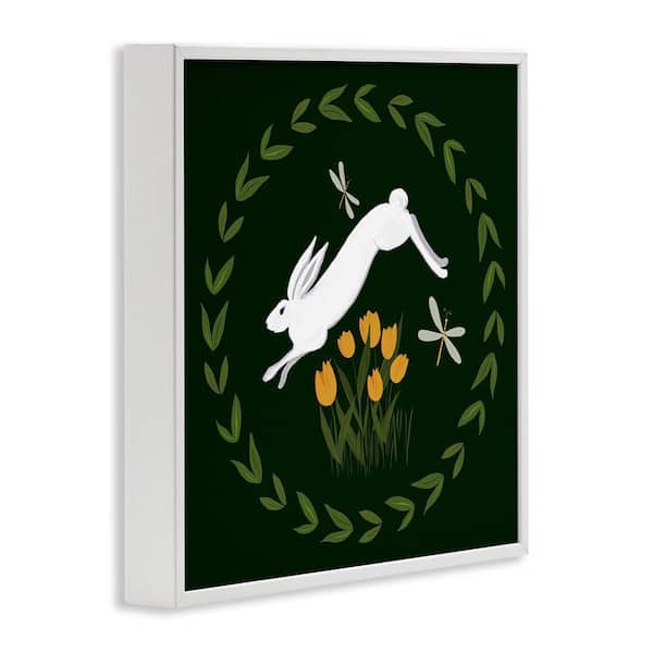 Bunny Hopping in Wreath by Michelle Ingari Designs White Framed Animal Giclee Art Print 12 in. x 12 in.