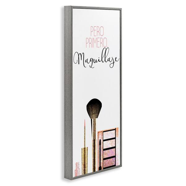 But First Makeup by Kim Allen Gray Framed Typography Giclee Art Print 30 in. x 13 in.