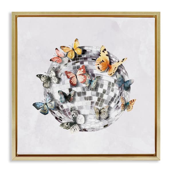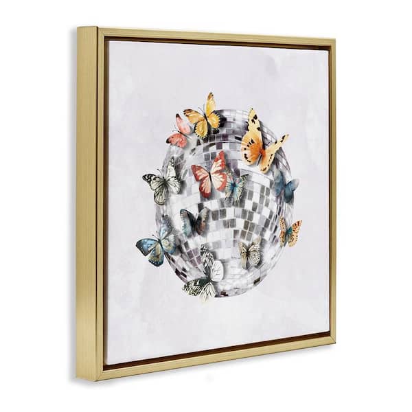 Butterflies on Disco Ball by Svetlana Aleynikova Gold Floater Frame Animal Graphic Art Print 25 in. x 25 in.