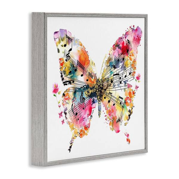 Butterfly and Music Notes by LSR Design Studio Gray Framed Animal Giclee Art Print 24 in. x 24 in.