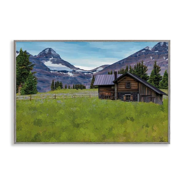 Cabin on Ranch Landscape by Renel Peters Gray Framed Nature Giclee Art Print 16 in. x 24 in.