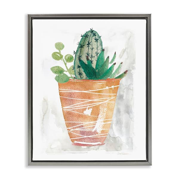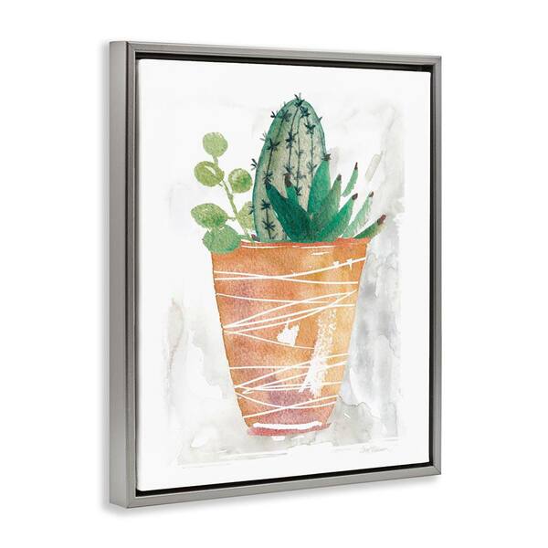 Cactus and Succulent Vase by Carol Robinson Gray Floater Frame Nature Graphic Art Print 31 in. x 25 in.