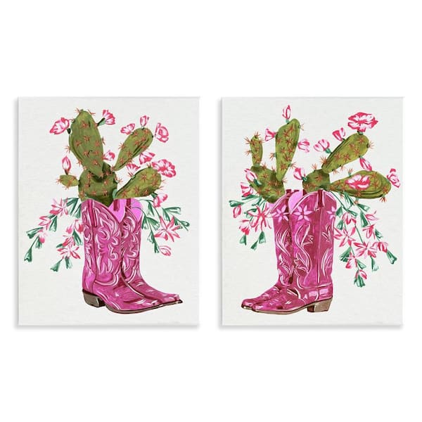 Cactus in Pink Cowgirl Boots by Melissa Wang 2 Pieces Unframed Nature Graphic Art Print 14 in. x 11 in.