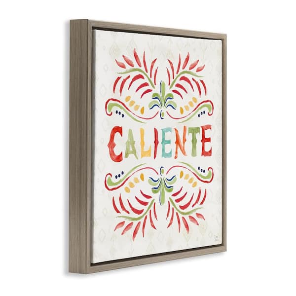 Caliente with Pattern by Dina June Brown Floater Frame Typography Graphic Art Print 18 in. x 18 in.