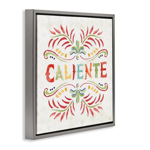 Caliente with Pattern by Dina June Gray Floater Frame Typography Graphic Art Print 18 in. x 18 in.