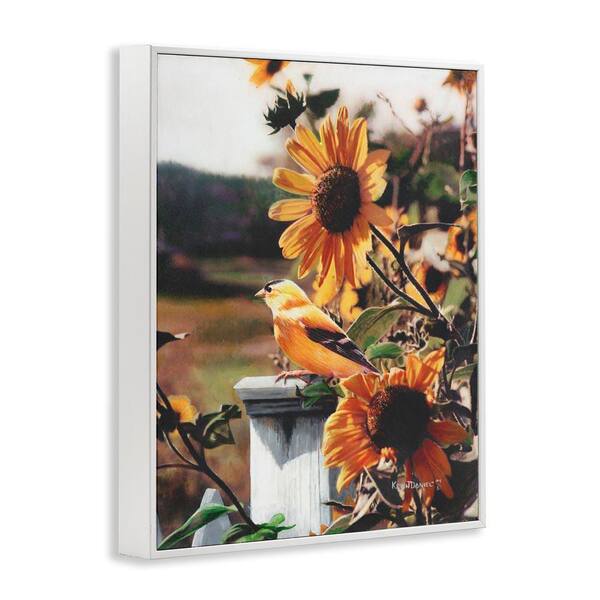 Canary Bird & Sunflowers by Kevin Daniel White Framed Nature Giclee Art Print 30 in. x 24 in.