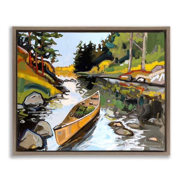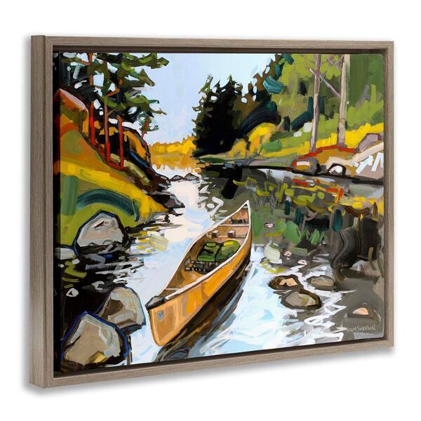 Canoe Through River by Adam Swanson Brown Floater Frame Nature Graphic Art Print 17 in. x 21 in.