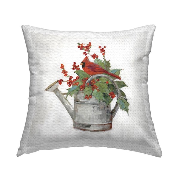 Cardinal and Watering Can Red Square Outdoor Throw Pillow