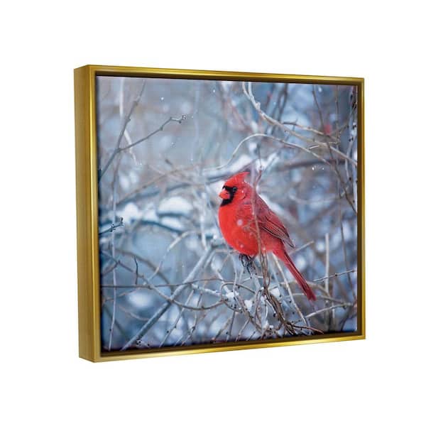 Cardinal in Winter Branches by Karen Burke 1 Piece Floater Frame Graphic Print Animal Poster Art Print 31 in. x 25 in.