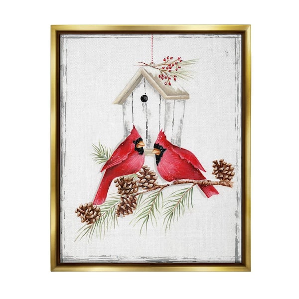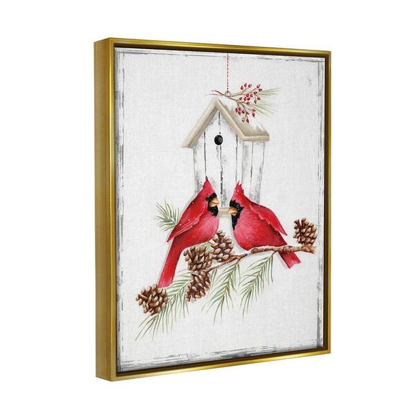 Cardinals and Snowy Birdhouse by Emma Leach 1 Piece Floater Frame Graphic Print Animal Poster Art Print 31 in. x 25 in.
