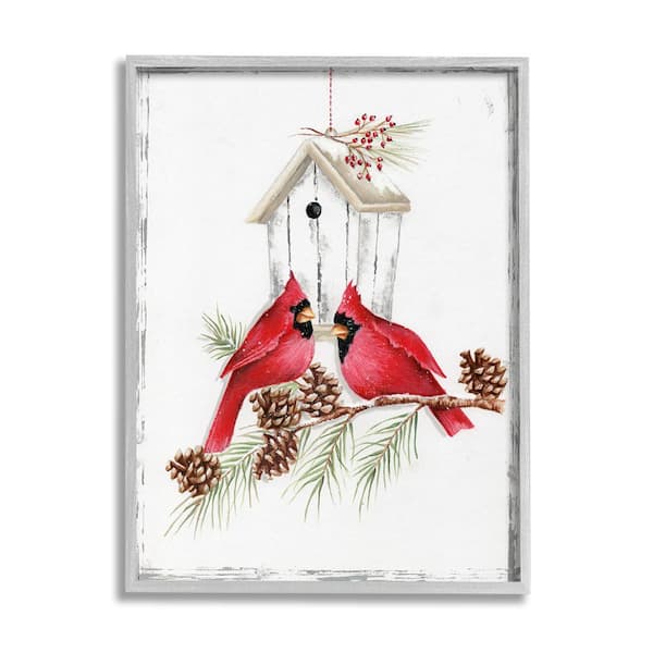 Cardinals and Snowy Birdhouse by Emma Leach 1-Piece Framed Graphic Print Animal Poster Art Print 20 in. x 16 in.