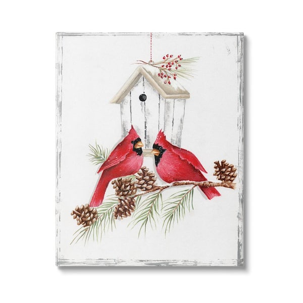 Cardinals and Snowy Birdhouse byEmma Leach 1-Piece Unframed Graphic Print Animal Poster Art Print 20 in. x 16 in.