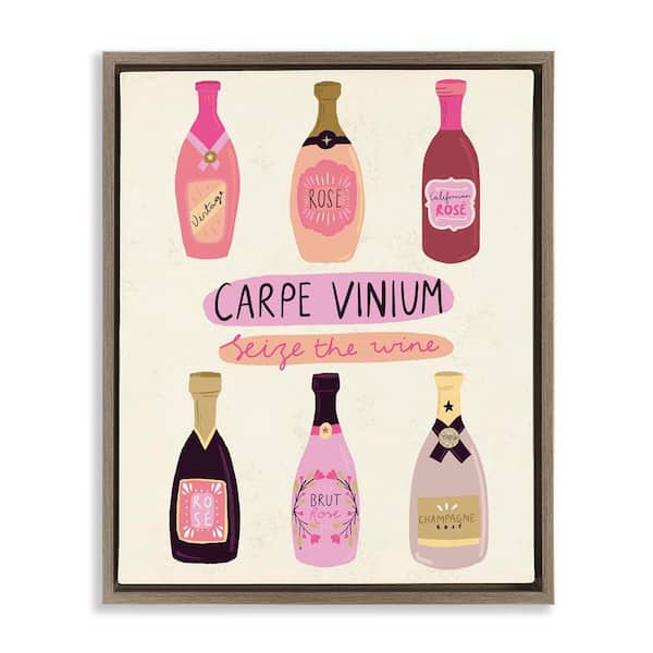 Carpe Vinium Seize the Wine by Louise Allen Designs Brown Floater Frame Food Graphic Art Print 31 in. x 25 in.