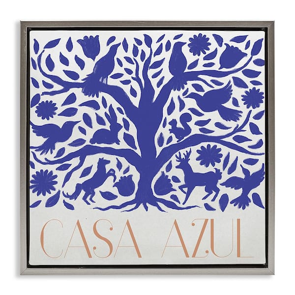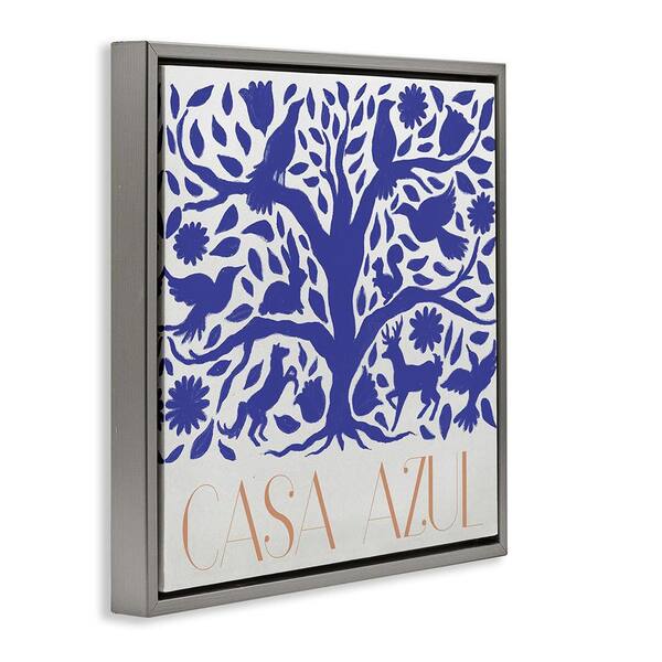 Casa Azul Blue Tree by Elizabeth Medley Gray Floater Frame Animal Graphic Art Print 25 in. x 25 in.