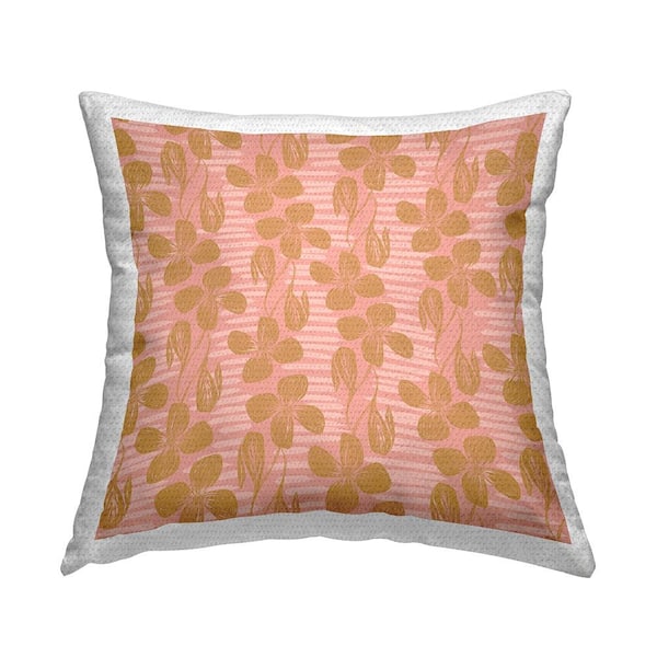 Casual Flower Petals Pink Stripes Pattern Pink Square Outdoor Throw Pillow