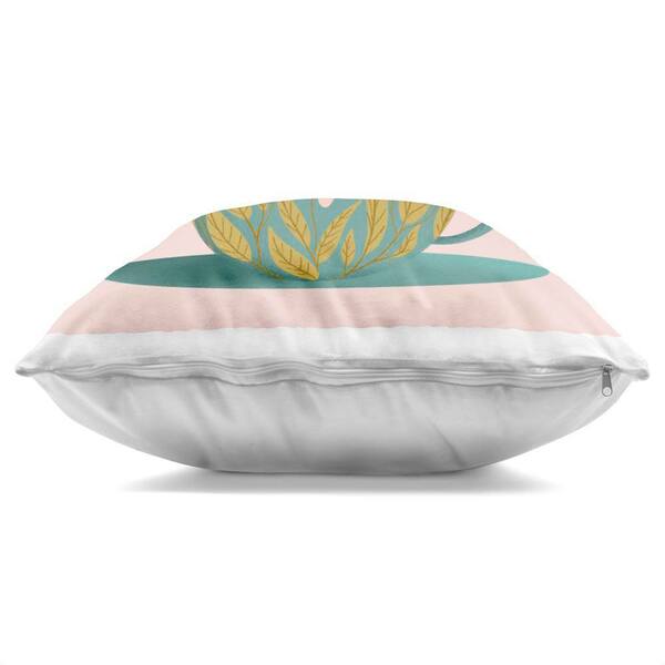 Cat Peeking Over Teacup Pink Abstract Polyester 18 in. X 18 in. Throw Pillow