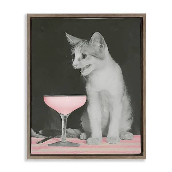 Cat and Pink Drink by Daphne Polselli Brown Floater Frame Food Graphic Art Print 21 in. x 17 in.