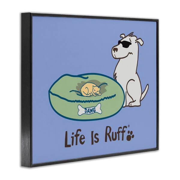 Cat on Dog Bed by LIR Black Framed Animal Giclee Art Print 24 in. x 30 in.