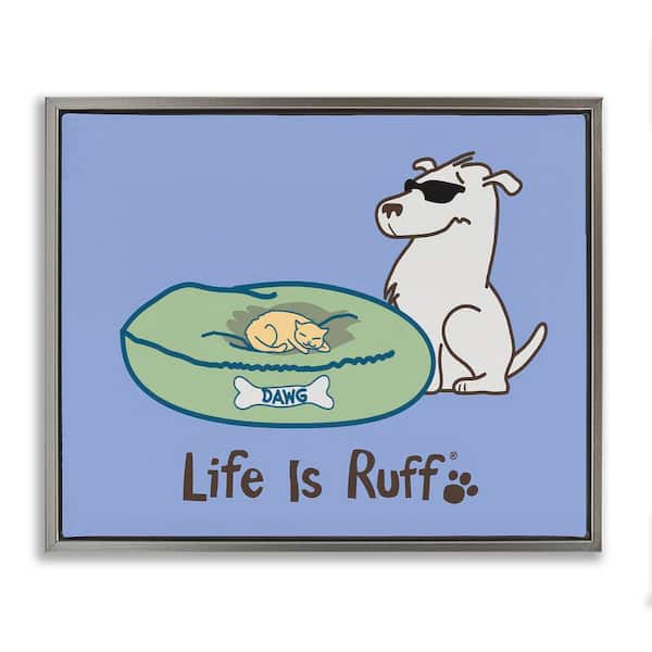 Cat on Dog Bed by LIR Gray Floater Frame Animal Graphic Art Print 25 in. x 31 in.