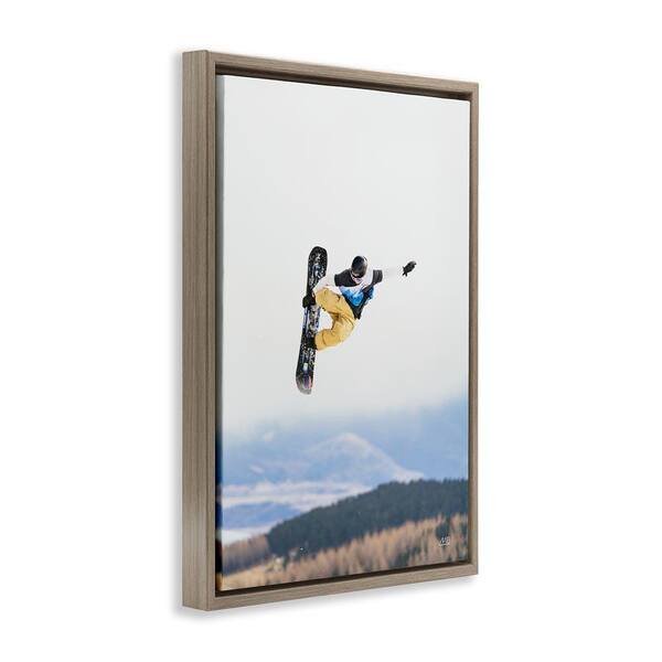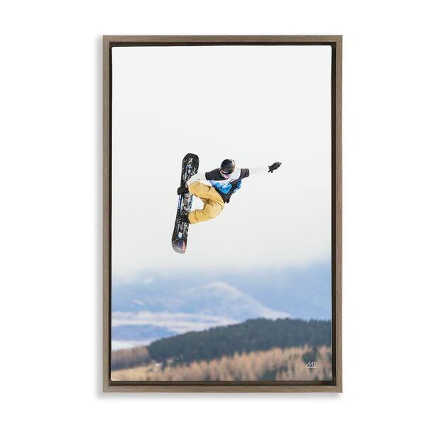Catching Air Snowboarder by Max Blakesberg Studios Brown Floater Frame Sports Graphic Art Print 31 in. x 21 in.