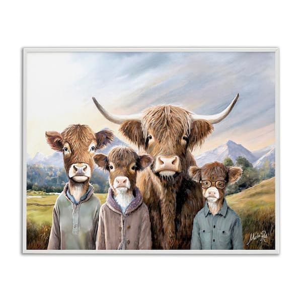 Cattle Family Portrait by Marla Rae White Framed Animal Giclee Art Print 24 in. x 30 in.