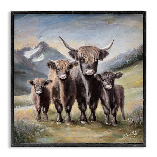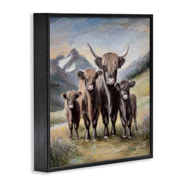 Cattle Family in Highlands by Marla Rae Black Framed Animal Giclee Art Print 12 in. x 12 in.