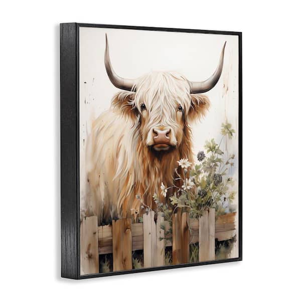 Cattle and Garden Fence by Arlington Prints Black Framed Animal Giclee Art Print 20 in. x 16 in.