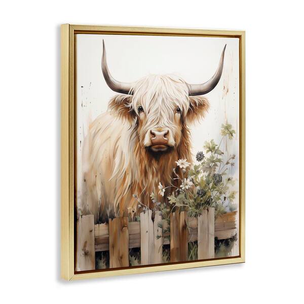 Cattle and Garden Fence by Arlington Prints Gold Floater Frame Animal Graphic Art Print 21 in. x 17 in.