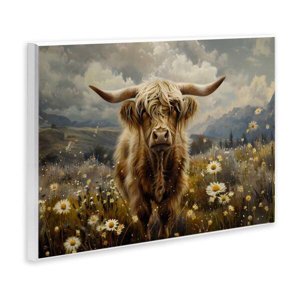 Cattle in Daisy Field by LSR Design Studio Unframed Animal Graphic Art Print 13 in. x 19 in.