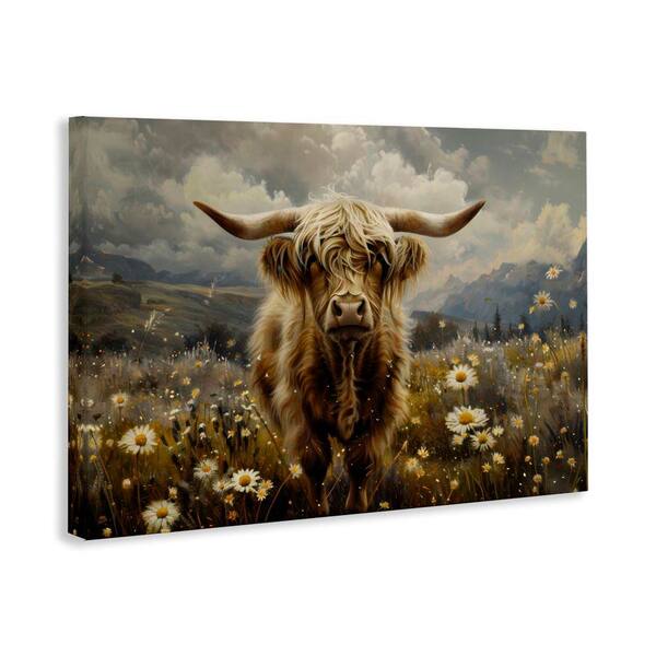 Cattle in Daisy Field by LSR Design Studio Unframed Animal Graphic Art Print 30 in. x 45 in.