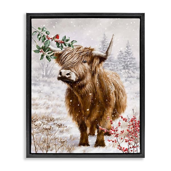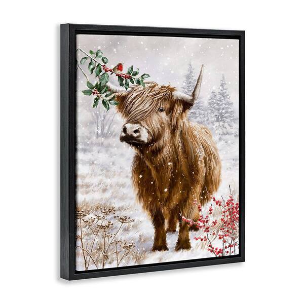 Cattle with Winter Berries by Ian Saxton 1 Piece Floater Frame Graphic Print Animal Poster Art Print 31 in. x 25 in.