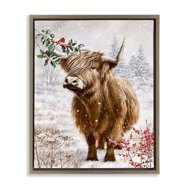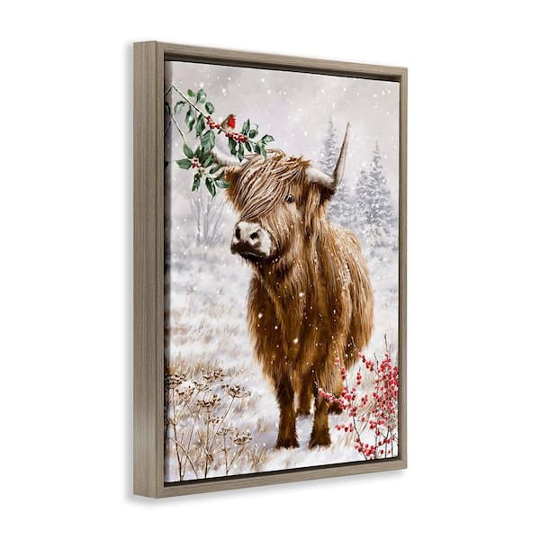 Cattle with Winter Berries by Ian Saxton 1 Piece Floater Frame Graphic Print Animal Poster Art Print 31 in. x 25 in.