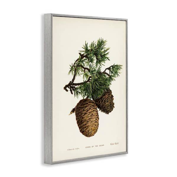 Cedar Tree Pinecones by Tina Higgins Designs, Inc. Gray Framed Nature Giclee Art Print 24 in. x 16 in.