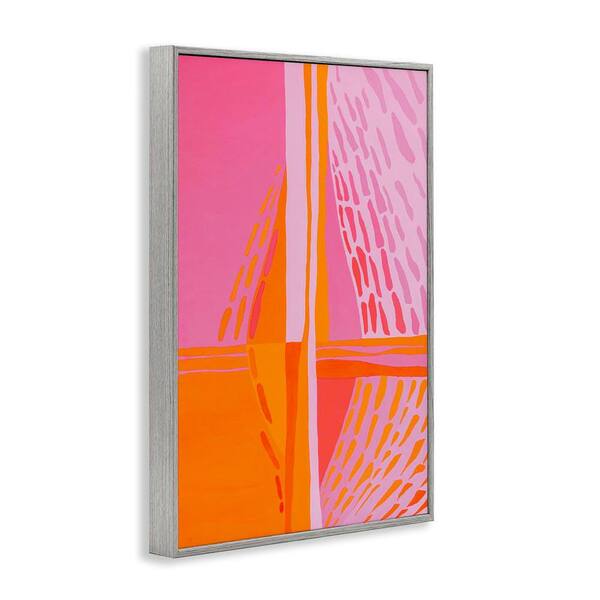 Centric Orange and Pink by Incado Gray Framed Abstract Giclee Art Print 24 in. x 16 in.