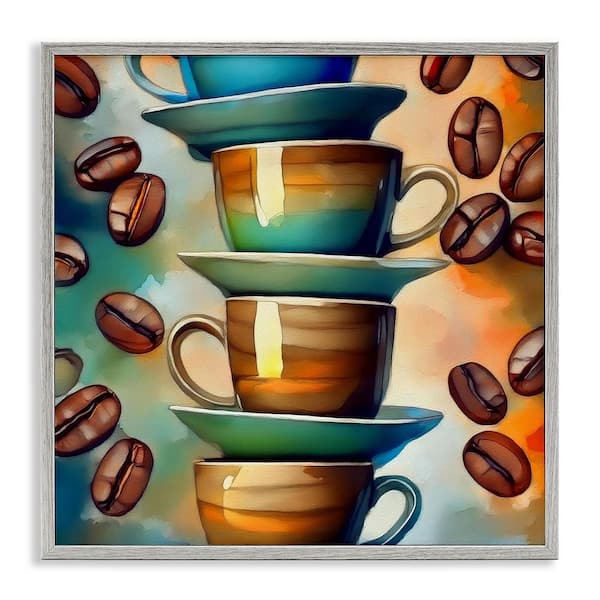 Ceramic Teacups & Coffee by Alina Georgescu Gray Framed Food Giclee Art Print 12 in. x 12 in.