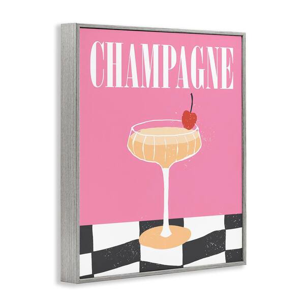 Champagne with Cherry by House of Lulu Gray Framed Food Giclee Art Print 30 in. x 24 in.