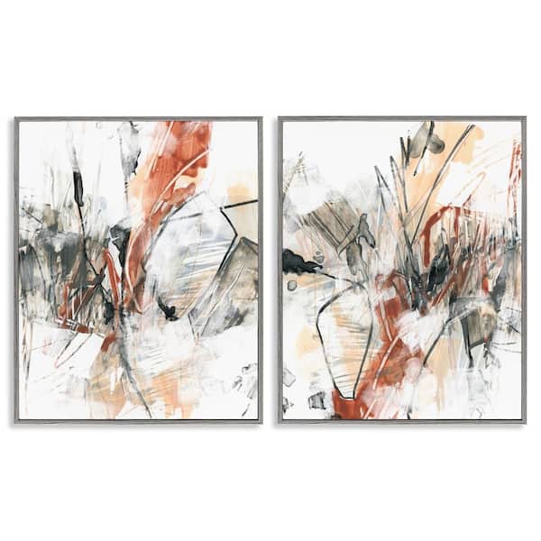 Chaotic Scribbles Abstracts by June Erica Vess 2 Pieces Gray Framed Abstract Giclee Art Print 14 in. x 11 in.