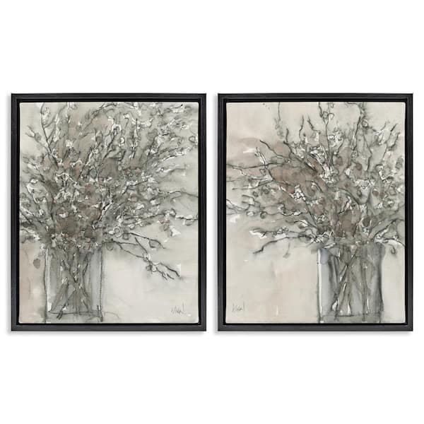 Charcoal Sketched Vase by Samuel Dixon 2 Pieces Black Floater Frame Nature Graphic Art Print 31 in. x 25 in.