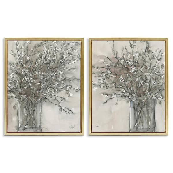 Charcoal Sketched Vase by Samuel Dixon 2 Pieces Gold Floater Frame Nature Graphic Art Print 31 in. x 25 in.