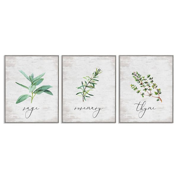 Charming Summer Kitchen Herbs by Lettered and Lined 3-Pieces Gray Framed Typography Giclee Art Print 30 in. x 24 in.
