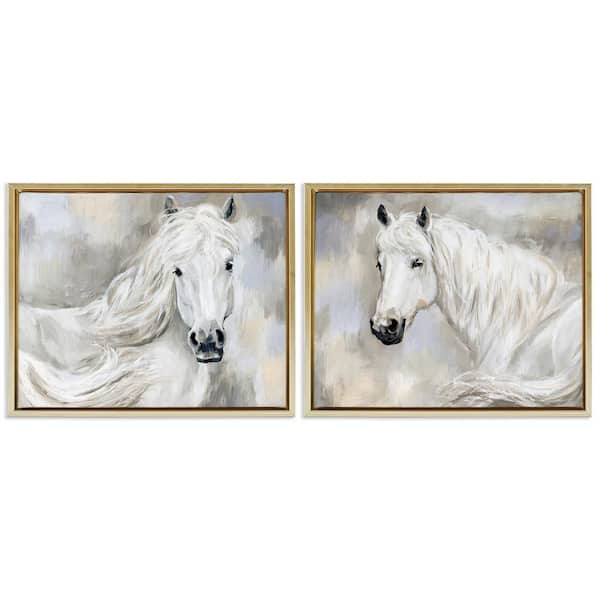 Charming White Horses by Victoria Barnes 2-Pieces Gold Floater Frame Animal Graphic Art Print 17 in. x 21 in.